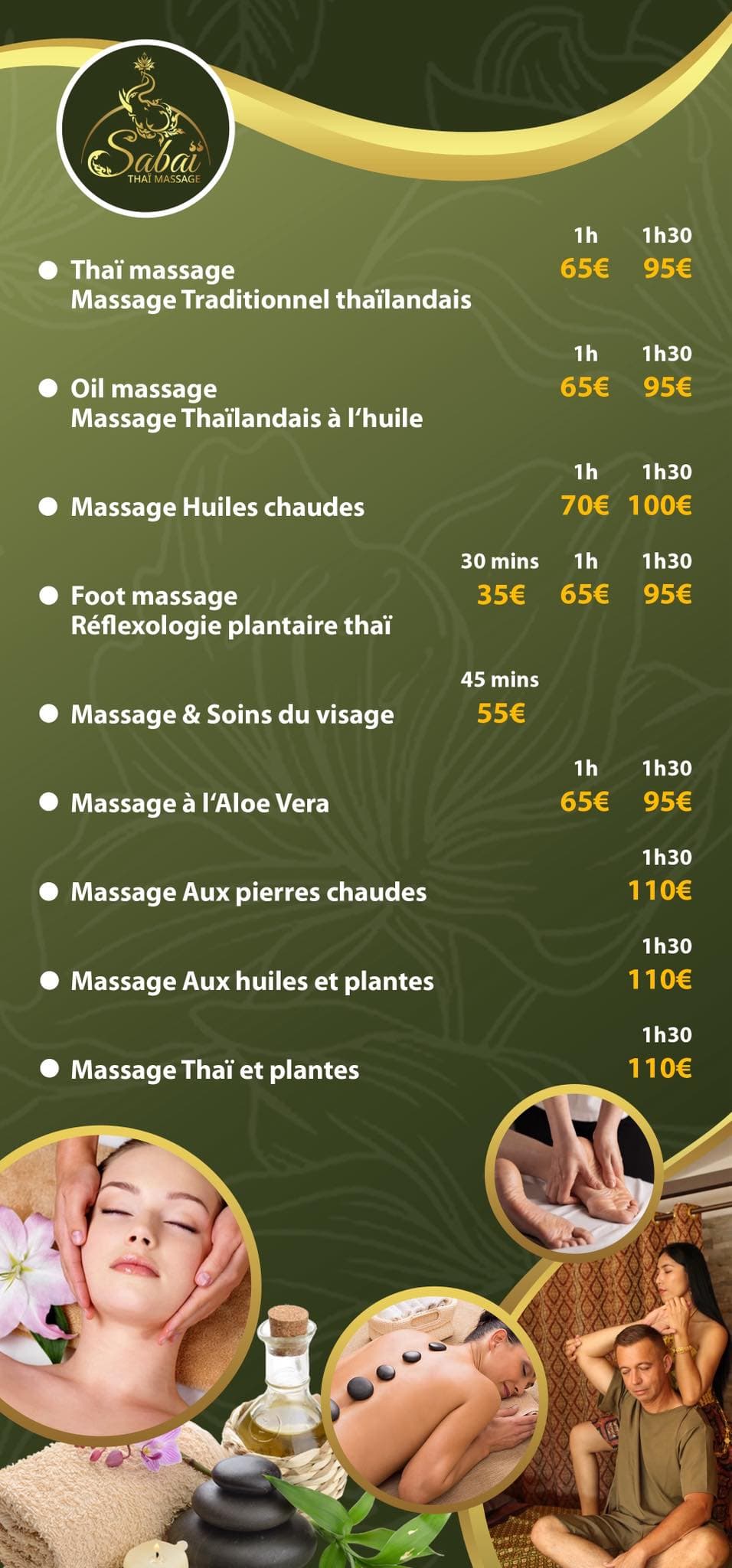 Détente profonde, techniques authentiques et huiles naturelles. Offrez-vous un moment Sabai.